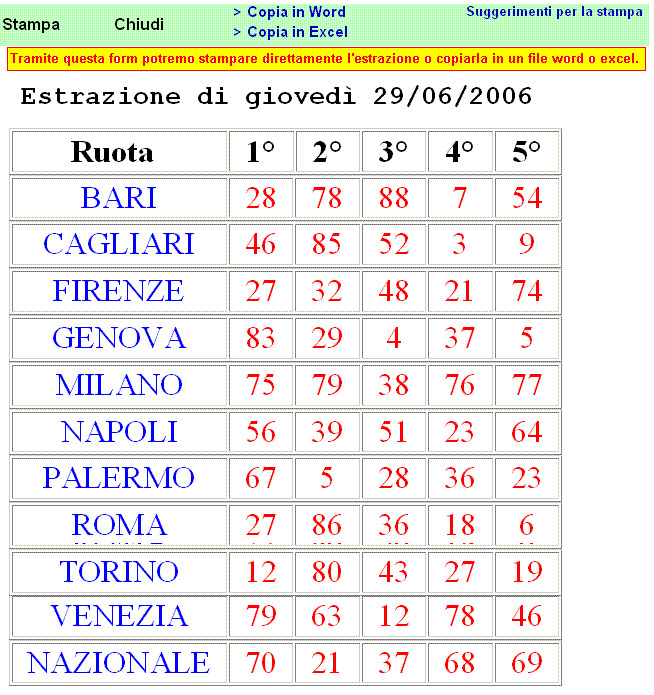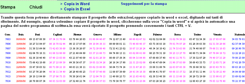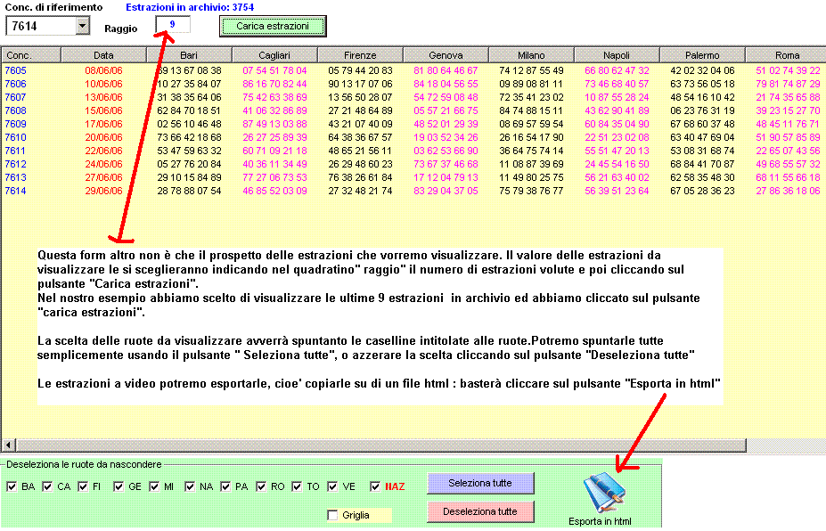 volessimo avere la visione di più di una estrazione, ci basterà cliccare