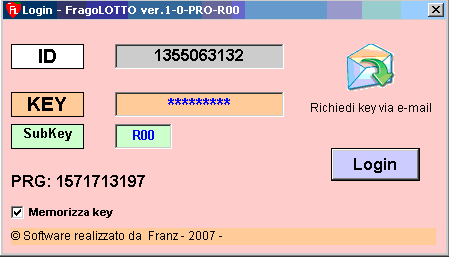 Un antico detto citava: "in un solo giorno non si fece Roma e con un solo colpo non cascò la quercia". Nel nostro caso la pazienza certosina e la validità dei propositi ha trovato conforto nella implementazione di un nuovo software : FragoLotto. Facile,agevole,potente,innovativo nelle funzioni, FragoLotto è un software che realizza metodi legati al gioco del lotto ,con particolare attenzione "all' estratto determinato ed all'ambata generator, coesi alle F.T. statistiche,per ogni sorte di gioco,dall'ambo alla cinquina." Interattivo,corredato da funzioni automatiche,spettacolare nella grafica, FragoLotto è un vero portento per chi vorrà dedicarsi allo studio numerico onde soddisfare il desiderio di vincere. FragoLotto è uno strumento col quale potremo inserire ogni forma e tipo di algoritmo utile per la realizzazione di un metodo di gioco .Non c'e' limitazione alle operazione matematiche eseguibili: