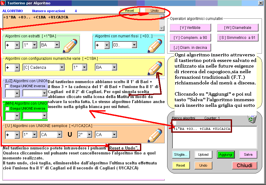 Cosa è il tastierino numerico? E' semplicemente uno strumento col quale potremo inserire ogni forma e tipo di algoritmo che ci sarà utile per realizzare un metodo di gioco. Non c'e' limitazione alcuna circa le operazioni matematiche utilizzabili: