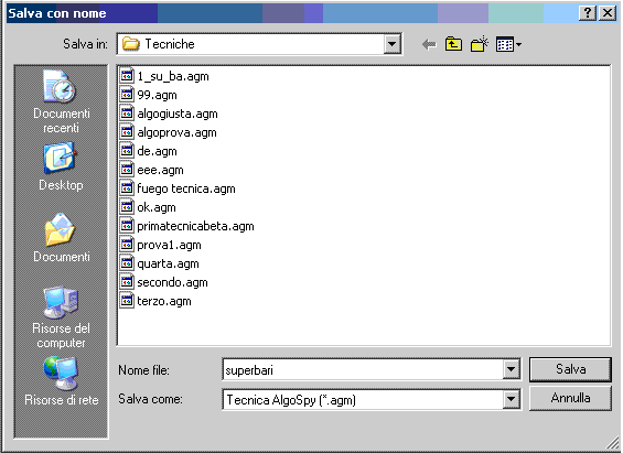 Per richiamare l'evento spia basterà cliccare sulla casellina gialla intitolata" Importa pacchetto spia",scegliere la tecnica spia esportata...et voilà. Noterete anche la presenza di una icona a forma di punto interrogativo: il click su tale immagine ci consentirà di ottenere a video le informazioni circa la tecnica importata dal modulo spie.