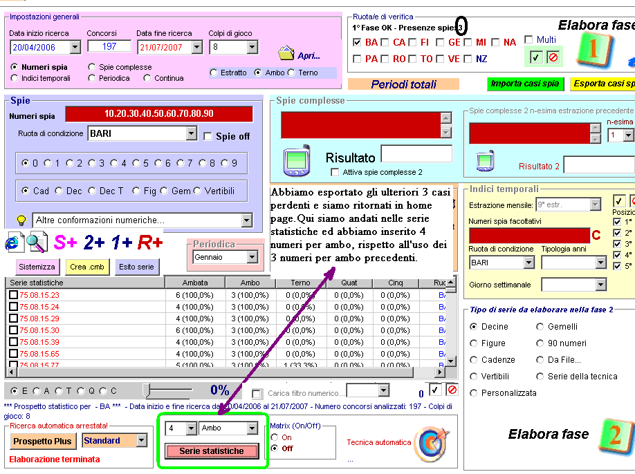 individuare le migliori ambate,oppure gli ambi e/o le terzine/