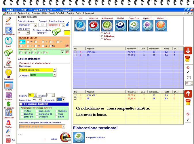 Dopo aver elaborato la nostra tecnica e scelto gli abbinamenti,entreremo nella schermata del compendio statistico e:
