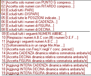 N.b. questo filtro AGGIUNGE NUMERI DI FIGURA, CADENZA E DECINA DINAMICA e non va confuso col filtro indicato precedentemente, in quanto questi permette di accettare come abbinamenti numeri che soddisfino la condizione richiesta di figura , cadenza e decina.