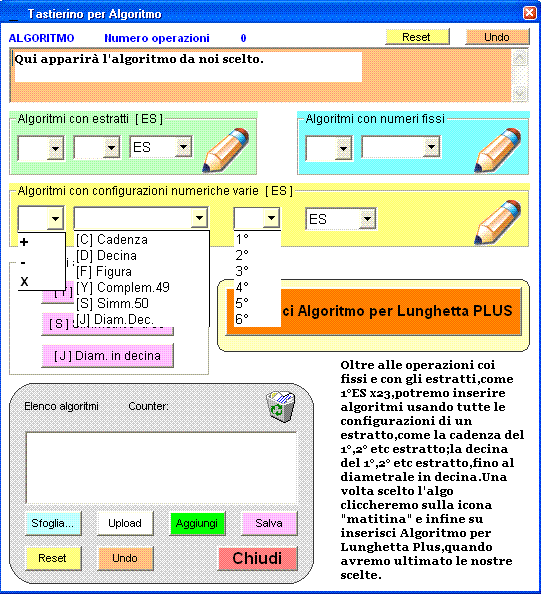 Cosa è il tastierino numerico? E' semplicemente uno strumento col quale potremo inserire ogni forma e tipo di algoritmo che ci sarà utile per realizzare un metodo di gioco. Non c'e' limitazione alcuna circa le operazioni matematiche utilizzabili: