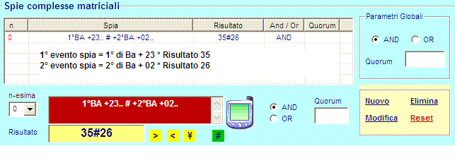 Quorum globale valore 2 Significa : accetta come condizioni spia almeno due righe fra quelle presenti. Essendo due le righe significherà che verranno considerati casi spia solo quelle estrazioni che rispettassero entrambe le condizioni.