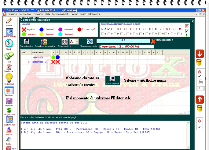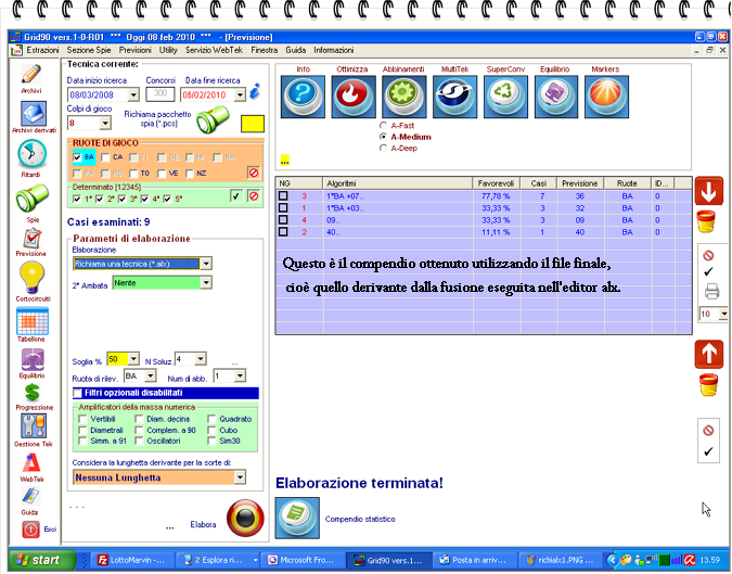 Dopo aver elaborato la nostra tecnica e scelto gli abbinamenti,entreremo nella schermata del compendio statistico e: