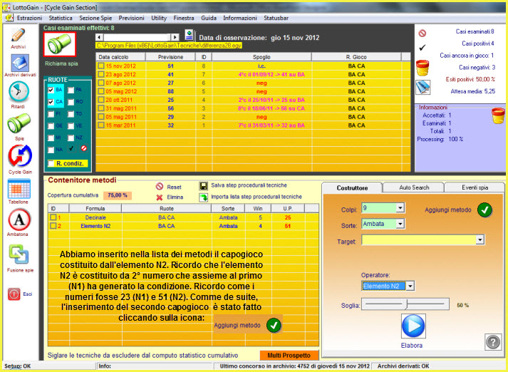 la costruzione di metodi, anche misti, formati da ambi, terzine, quartine o