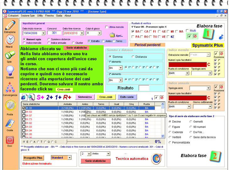 Qui faremo di click sul pulsante "Elabora fase 1" in modo da ottenere la cattura di tutti i casi spia.