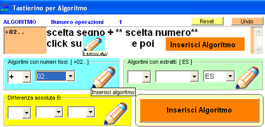 Spesso, anzichè intercettare output basati solo sui numeri fissi, si potrà avere la necessità di utilizzare algoritmi del tipo 1°ES x 4°ES. Tali algoritmi li inseriremo usando il tastierino numerico e valuteremo i risultati sui casi spia esaminati. Se l'algoritmo immesso non ci garba, potremo modificarlo e valutare l'impatto della nuova formula sui casi spia esaminati. Le possibilità algoritmiche sono praticamente infinite: a noi il compito di scegliere quello con migliori performances.