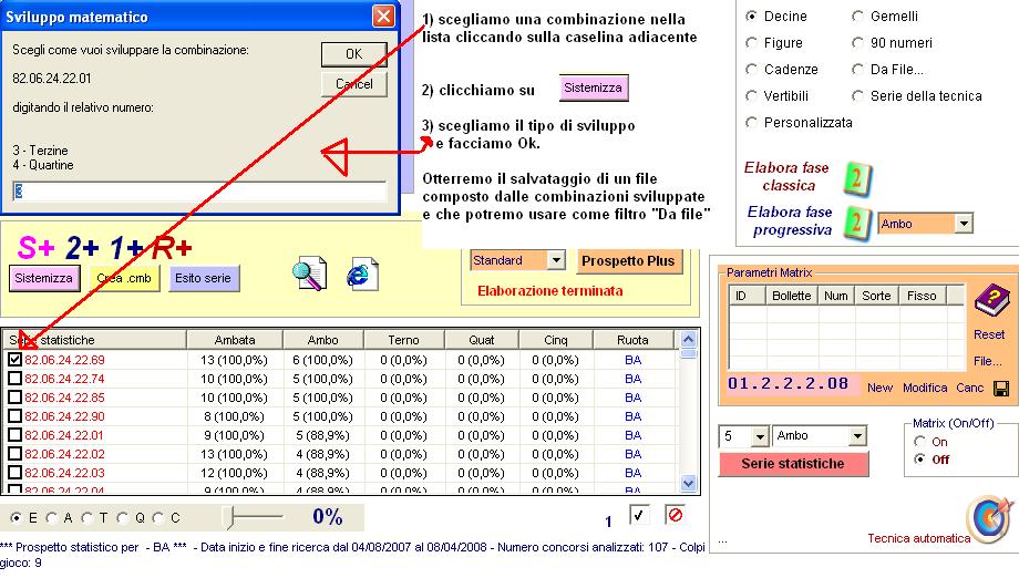 La percentuale scelta dirà al programma di farci visualizzare soltanto quelle combinazioni che abbiano superato,o siano pari, alla medesima percentuale.